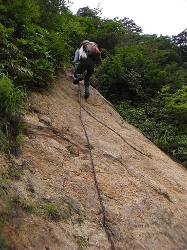 沢沿いに下りていく最後の部分は急傾斜というより真っ逆さま。