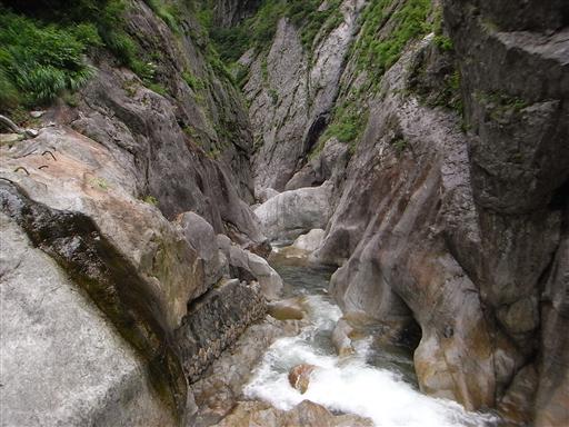 これから下っていく沢は両岸とも岩壁に覆われている。凄まじい峡谷だ。