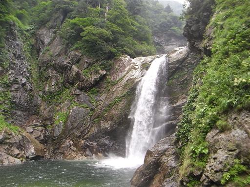 不動滝。シンプルな形だが、水量が多く迫力がある。