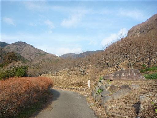 正面に幕山が聳える。まだ梅はほとんど咲いていないようだ。