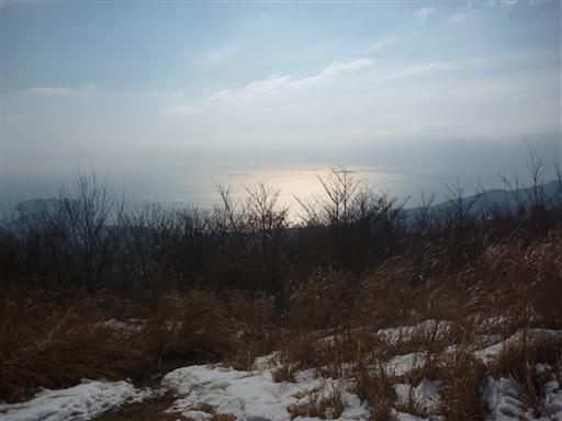 山頂部は雪が積もっている。暖かい地域の低い山なのでこんなに雪が積もっているとは思わなかった。