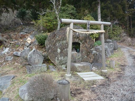 しばらく下ると車道に出てくる。道の脇には山の神が祀られている。