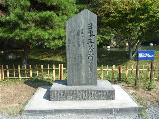 日本三景碑。辺りには団体観光客が多い。