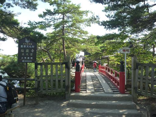 瑞巌寺五大堂にたどり着く。手前の橋は「すかし橋」という名で、足元から海が見える。