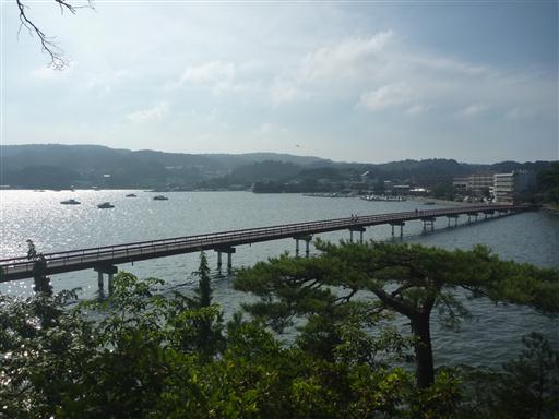 大きな島に向かって長い橋が伸びている。