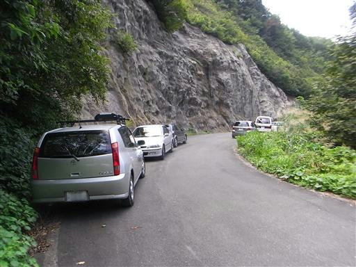 車道に下山。ほとんど駐車場はないが多くの車が停まっている。