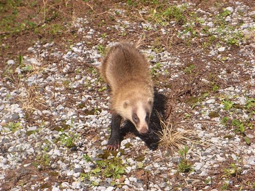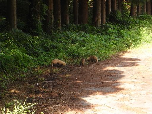 道端で一心不乱に土を掘っている動物を発見。3匹のイノシシだ。