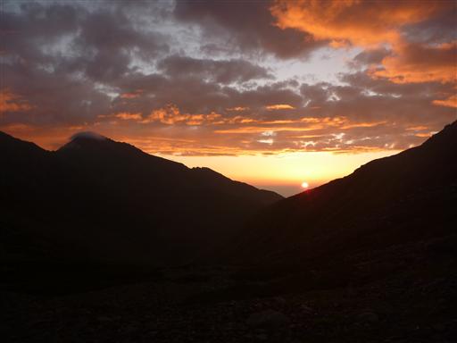 しばらく歩いているとラッキーなことに、ちょうど山と山の間から日の出を迎える。