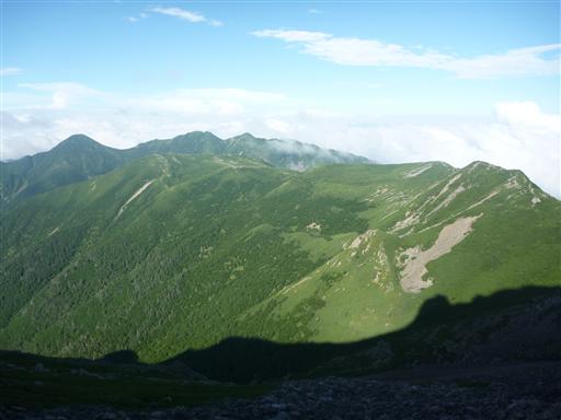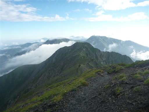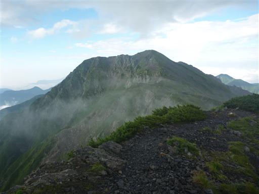 もう赤石岳の一角に足を踏み入れているので、巨大な赤石岳の全容を望むことはできない。