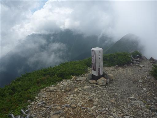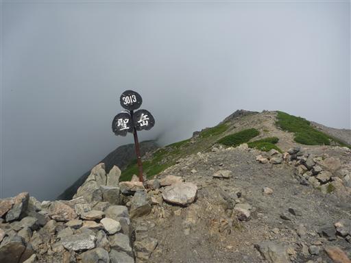 先ほどのピークが前聖岳、こちらが奥聖岳で、いかにもこちらが本峰っぽい名前だが、