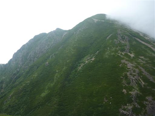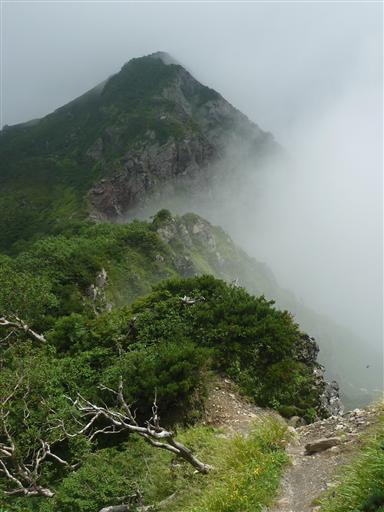 しばらく歩くと稜線は再び雲に覆われてしまう。