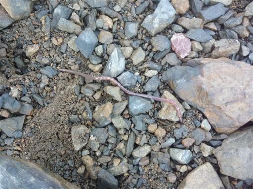 足元を見るとミミズが這っている。標高3000m級の山でもミミズはいるようだ。