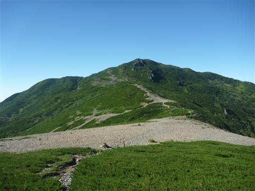 最終日だが今日もしばらくは登りがある。まずは目の前に見える上河内岳をめざす。