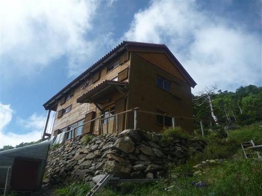 中腹に建つ横窪沢小屋。道中にも点々と小屋があるのはありがたい。