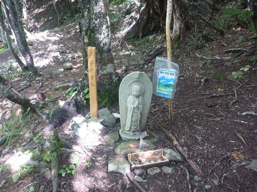 分岐点に戻って下山を開始する。遭難碑が一つ置かれている。