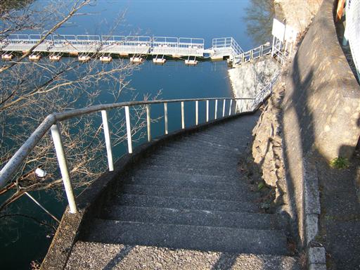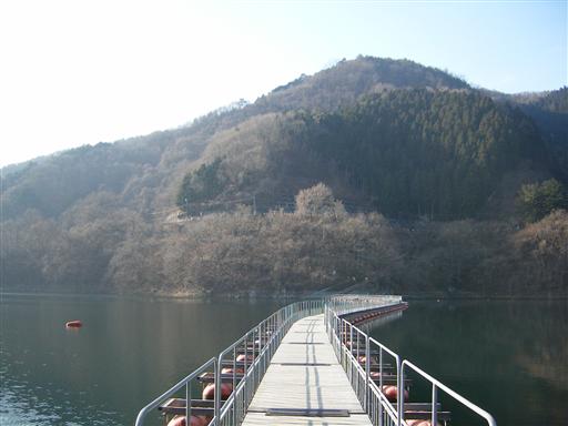 浮橋を使って奥多摩湖を渡る。この橋は結構揺れる。