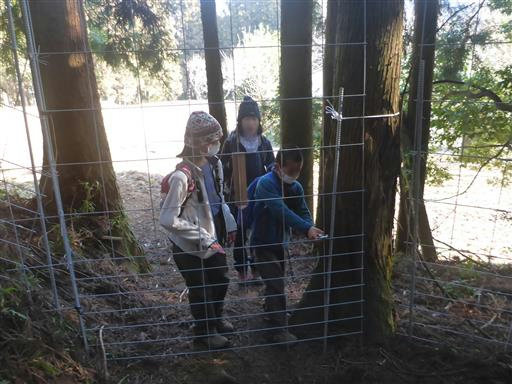 まずは動物除けの柵を越える。柵の扉はカラビナで留められている。