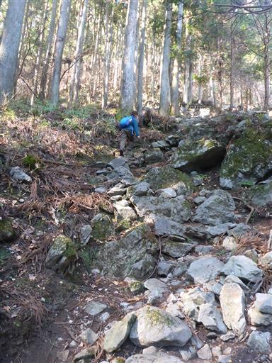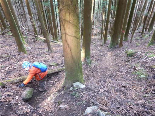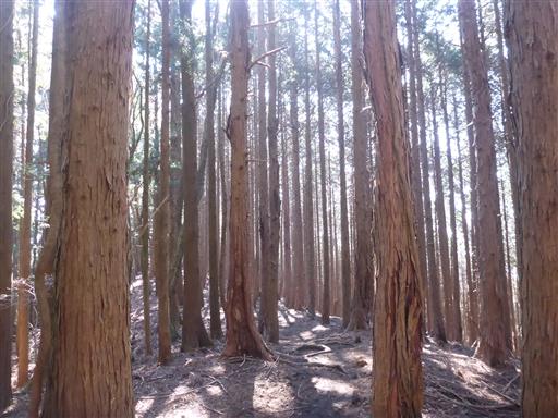 植林地帯の中を登って行く。