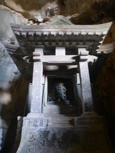 穴の奥に石祠がある。その奥に小さな穴があり
