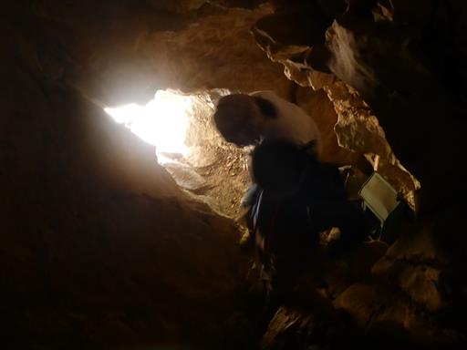 穴から見た鎖場。ここから下りるのは狭くて少々難しい。
