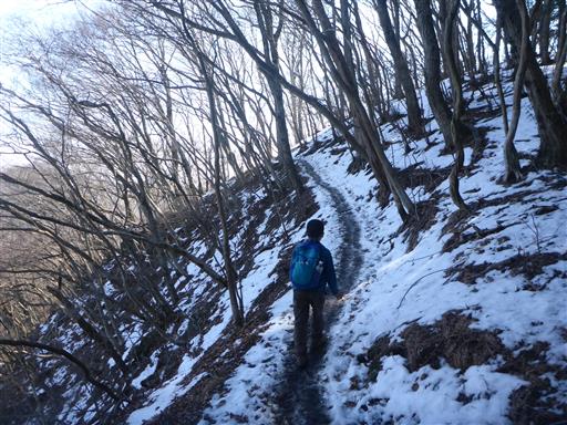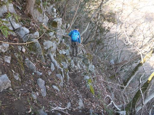 お岩戸を後にする。この辺りはトラバース道が続き、滑落に注意が必要だ。