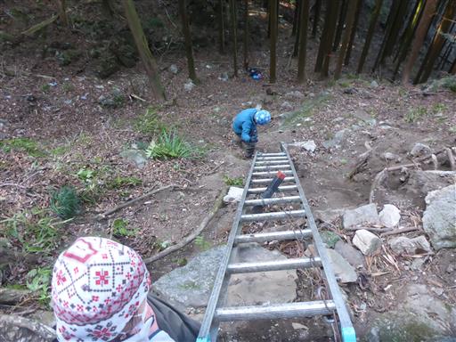 梯子に至る道はとてつもない急斜面。