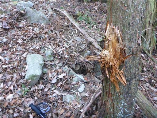 木の幹の表面がはがれている。巨大な落石が直撃でもしたのだろうか?
