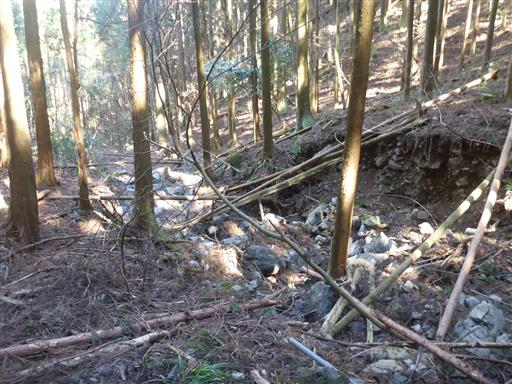 樹林に囲まれ展望はほとんどない山頂で、見える景色と言えば、石灰石採掘場くらい。