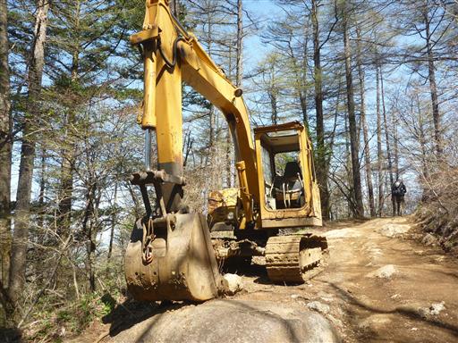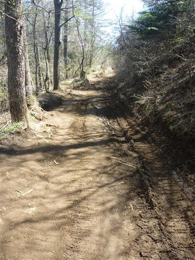 道にはキャタピラの轍が残っている。どこまで登っても林道のような道が続く。