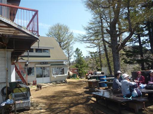 テーブルとベンチもあり、多くの登山者でにぎわっている。