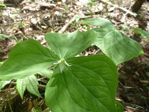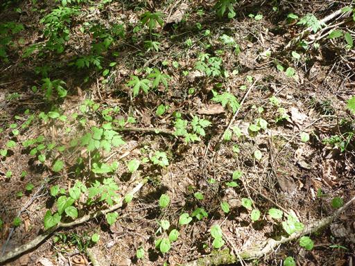 花壇のように土が残ったところにミツバツチグリが咲いている。