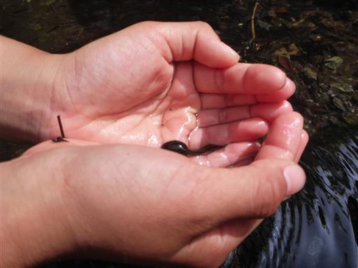 下山地点の小さな水流に大量のオタマジャクシを発見。