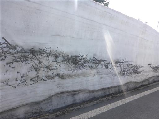 雪の壁から木の枝がはみ出している。あまり美しくない姿だ…
