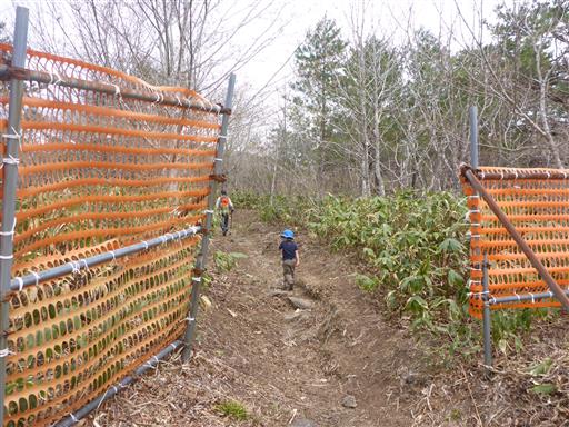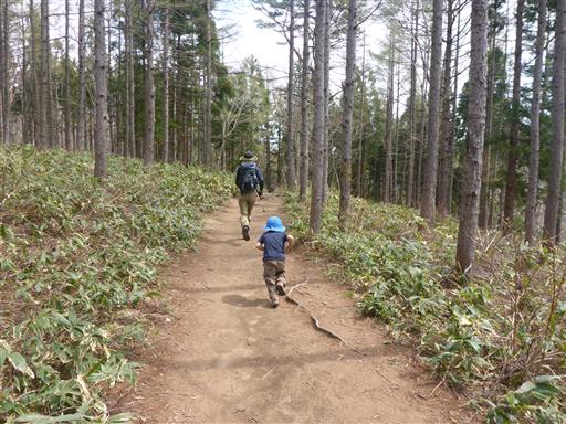 スキー場の上部に辿り着くと、ここからは登山道らしい道になる。