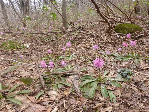 足元にショウジョウバカマの花があちらこちらに咲いている。