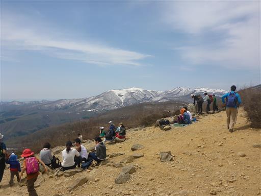 右手に見えるのは二口山塊の山々、そして左には昨日訪れた蔵王連峰が見えている。