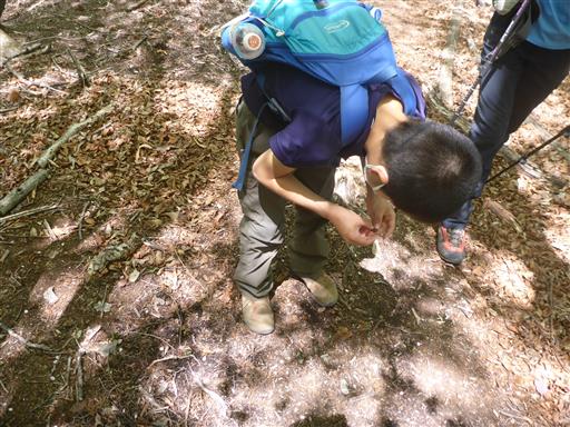 途中で栗を発見。イガの中から栗を取り出す。