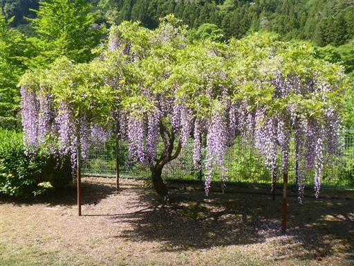 小さな藤棚。周囲には野生の藤も多くみられる。
