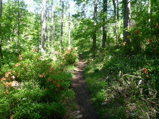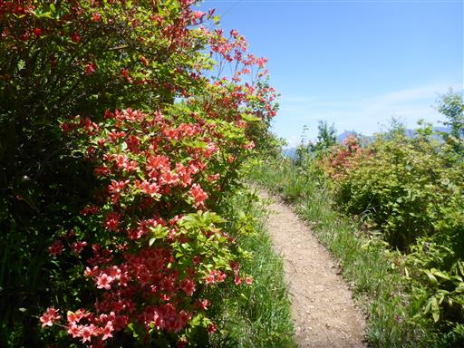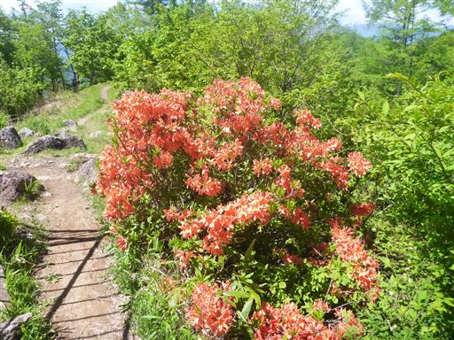 ところどころにレンゲツツジの花が咲いている。