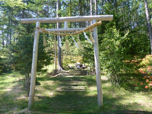 なぜか手作りの弓が奉納されている。