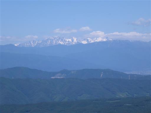 小さくて山座同定は難しいが、その右には白馬の方までずらっと見えている。