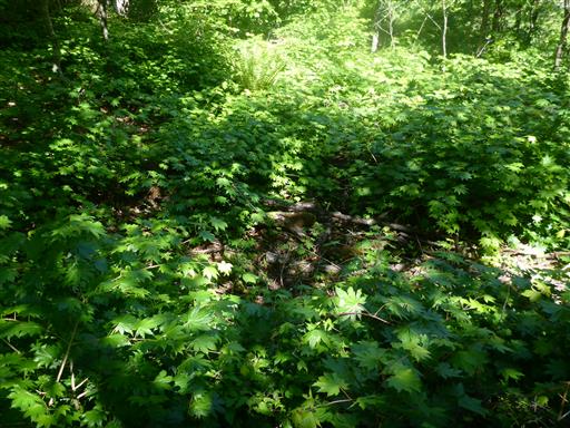 林床に広がる植物。モミジのような葉だがちょっと種類が異なりそうだ。