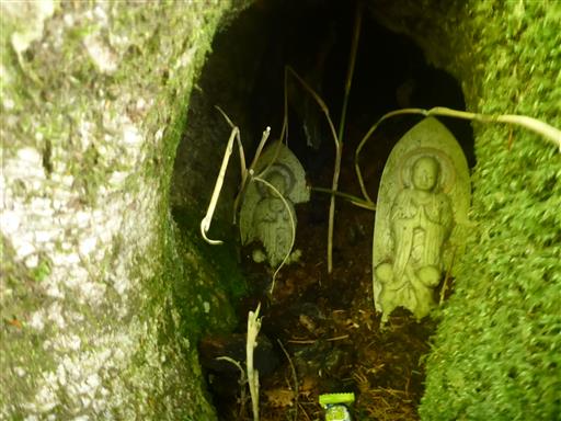 木の根元には仏が祀られている。