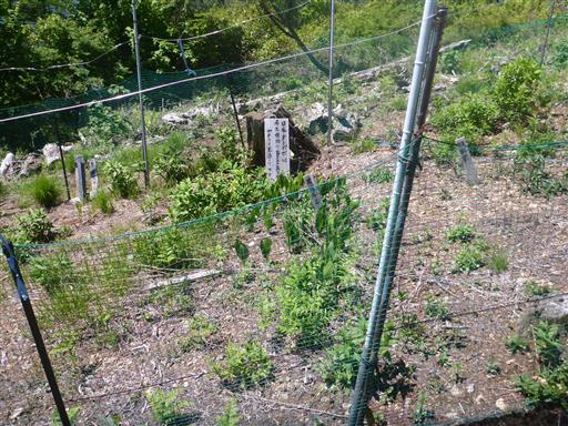 ネットで囲まれた植物栽培場所。