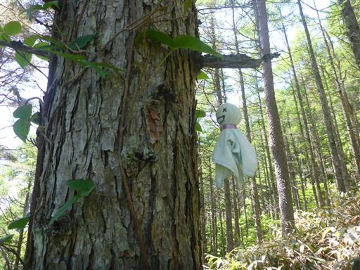 なぜか目が×のテルテルぼうずが吊るされている。
