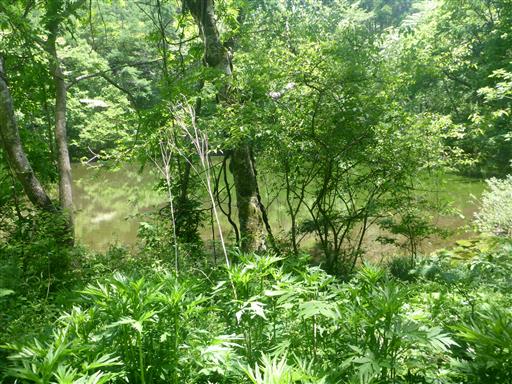 右手に小さな池が見える。