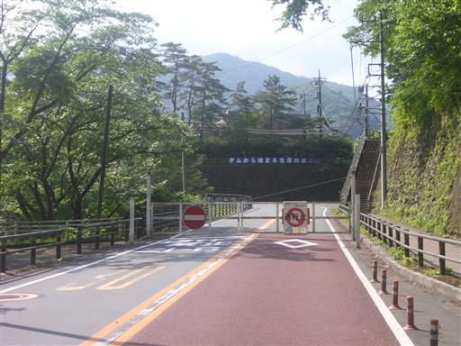奥多摩湖畔に向かう道路は封鎖されている。