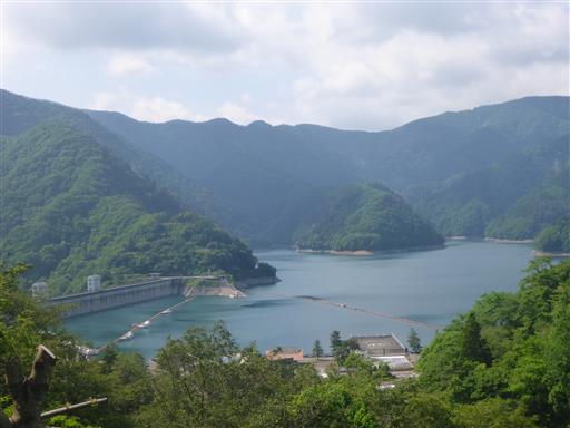 車道をしばらく登ると展望が開ける。眼下の奥多摩湖が美しい。