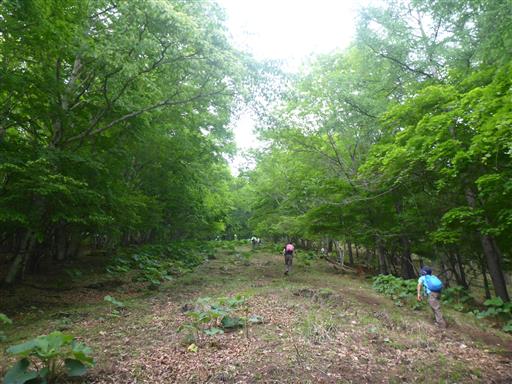 しばらく急登を耐えると、ようやく半分自然林になる。