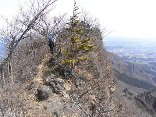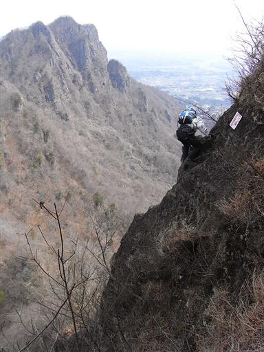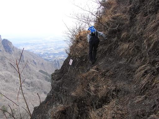 辺りはすべて岩壁。登山道は狭いので、油断して落下したら洒落にならない。